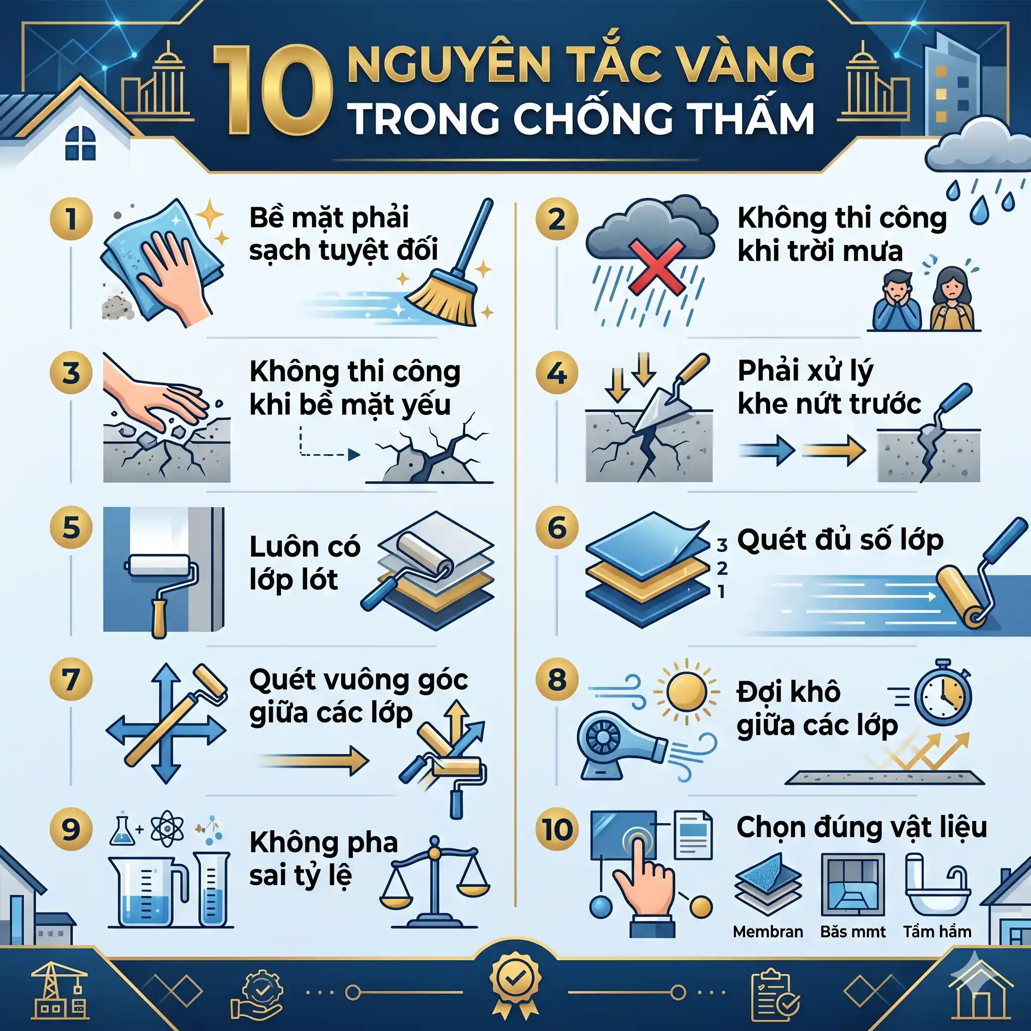 👉 Chính vì vậy, việc nắm rõ 10 nguyên tắc vàng trong chống thấm là điều bắt buộc nếu bạn muốn làm đúng ngay từ đầu.