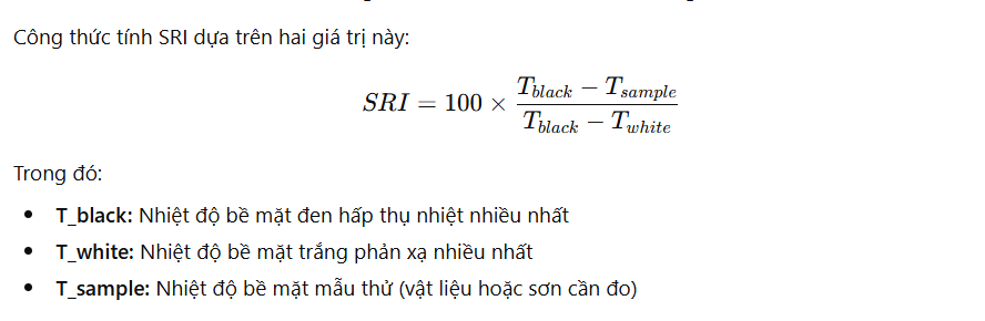 SRI càng cao ⇒ khả năng chống nóng càng tốt.
