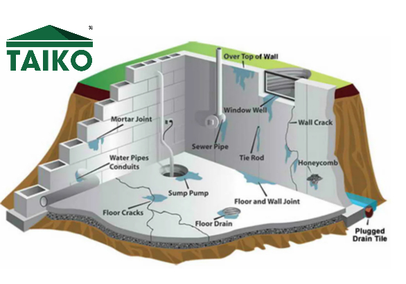 - Giải pháp: Sử dụng Taiko CT4 hoặc màng bitum kết hợp với hệ thống thoát nước ngầm.