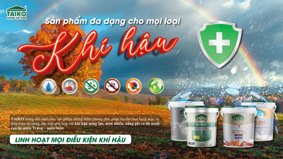 Đứng trước thực trạng đó, việc lựa chọn một giải pháp chống thấm ngay từ đầu không còn là một lựa chọn phụ, mà là một yêu cầu bắt buộc. Một sản phẩm Sơn chống thấm chất lượng phải vừa có khả năng ngăn nước tuyệt đối, vừa phải bền bỉ để chống chọi với thời tiết khắc nghiệt. Thấu hiểu sâu sắc điều đó, TAIKO GROUP đã ra đời, mang trong mình sứ mệnh kiến tạo những công trình bền vững và bảo vệ trọn vẹn mọi mái ấm Việt.