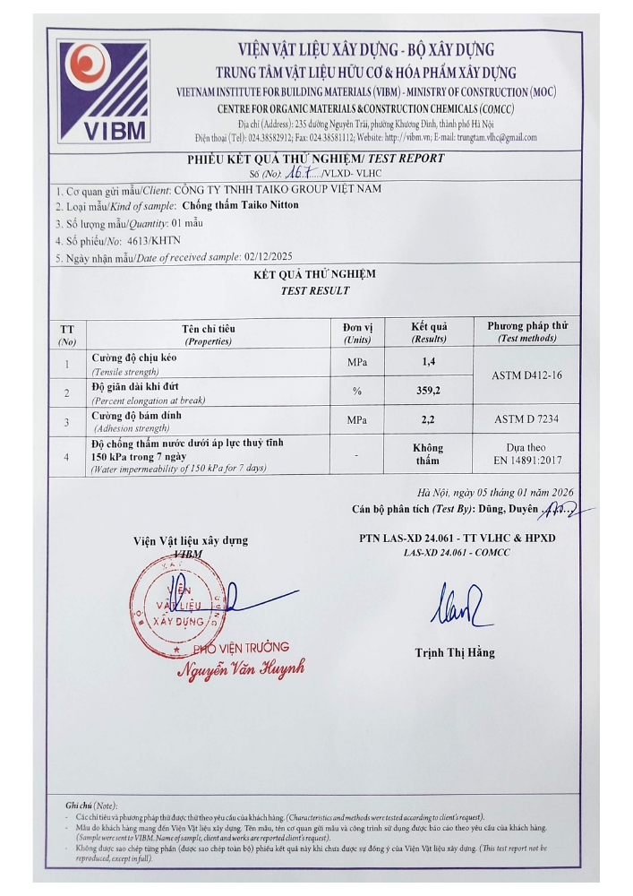 Nếu bạn đang tìm kiếm một giải pháp chống thấm tường ngoài và sàn mái hiệu quả – lâu dài – dễ thi công, thì Taiko Nitton là sản phẩm không thể bỏ qua.