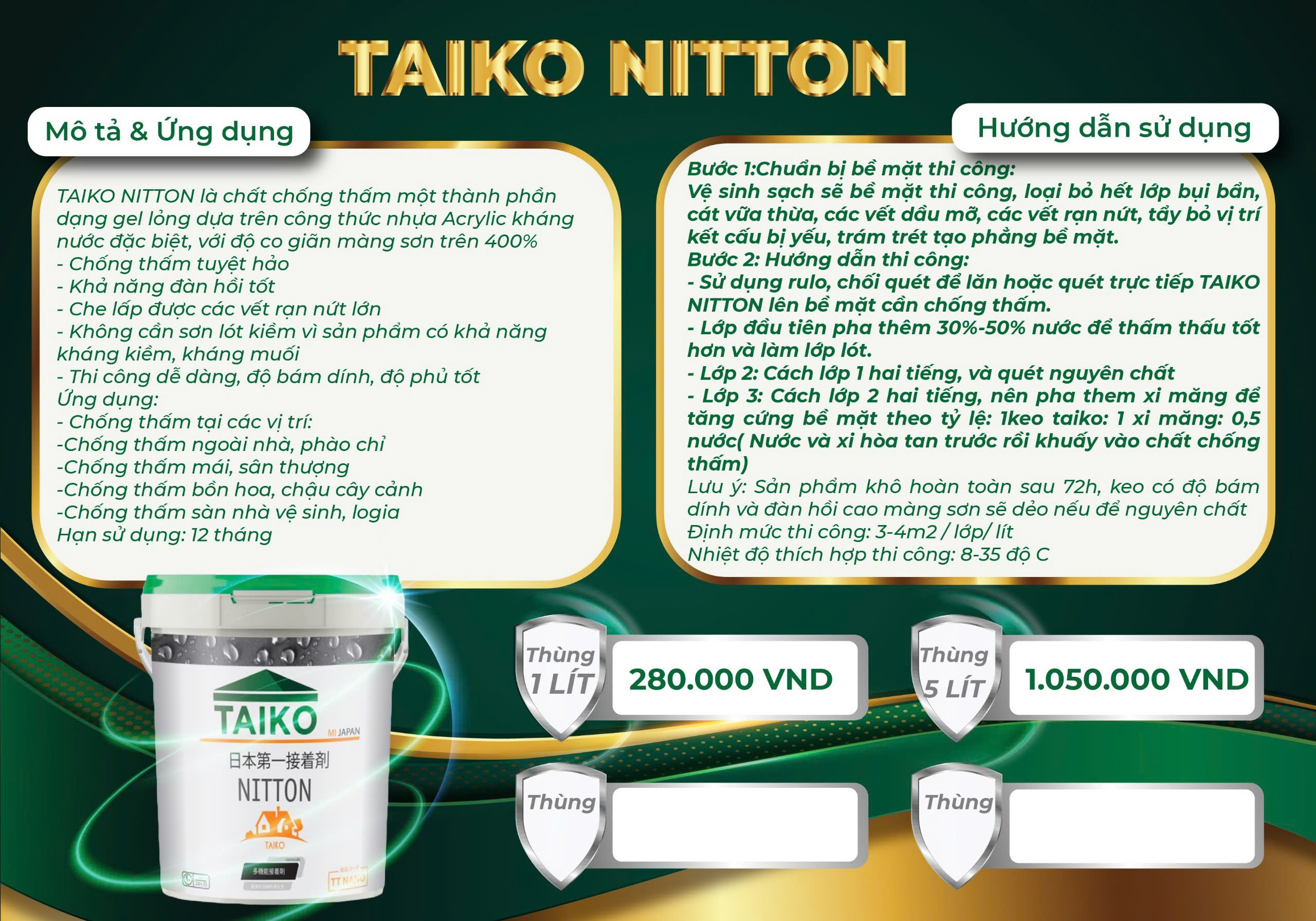 - Tên sản phẩm: Sơn Chống Thấm TAIKO NITTON