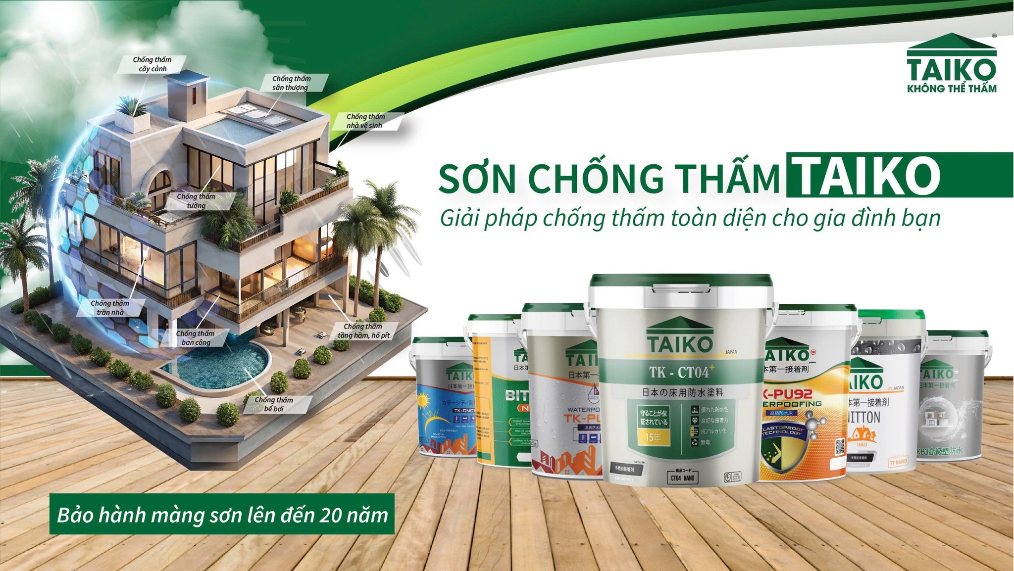Trong bài viết này, ngoài việc phân tích toàn diện nguyên nhân gây thấm – cơ chế hoạt động của sơn chống thấm, chúng tôi sẽ giới thiệu hệ thống sản phẩm TAIKO GROUP– thương hiệu chống thấm công nghệ Nhật Bản đang được hàng chục nghìn gia đình và thợ thầu trên khắp 63 tỉnh thành tin dùng.