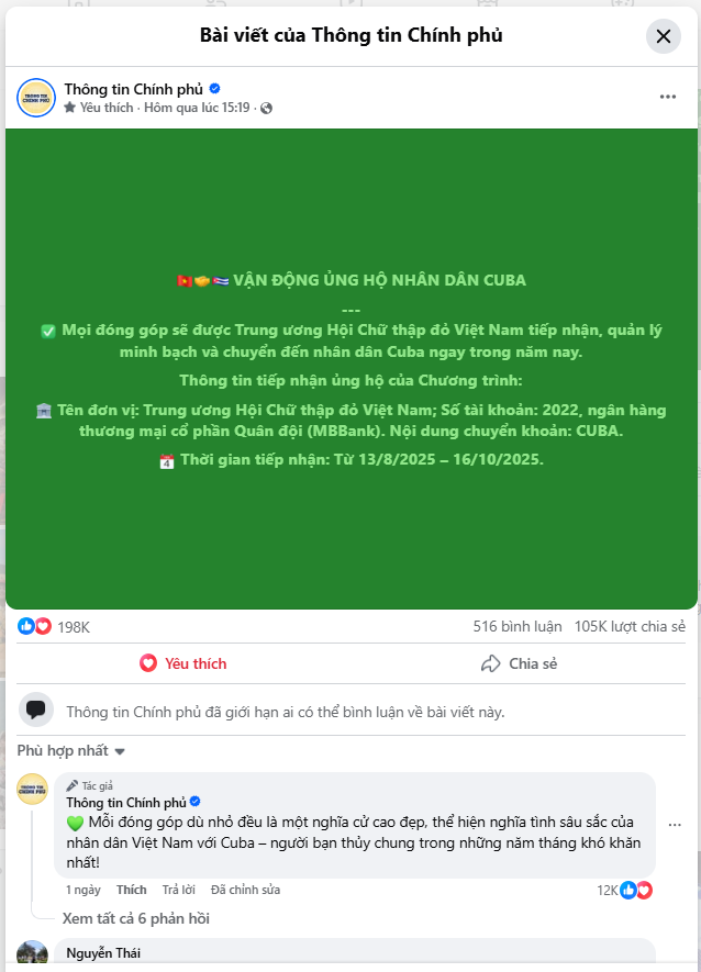 Chúng tôi hy vọng rằng hành động hỗ trợ nhân dân Cuba lần này sẽ là nguồn cảm hứng để các cá nhân, tổ chức khác cùng chung tay, lan tỏa những giá trị tốt đẹp, từ đó củng cố hơn nữa mối quan hệ đặc biệt giữa Việt Nam và Cuba.